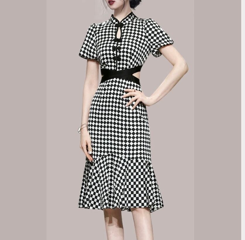 派手で目立つ♡格子柄ワンピース 韓国 タイトワンピース