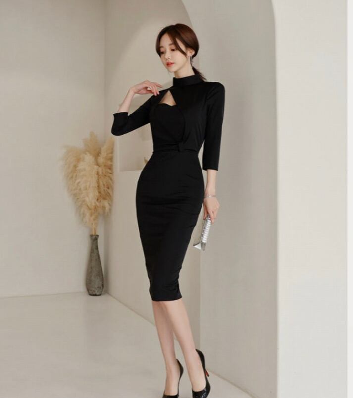 シンプルだけど上品♡タイトワンピース 韓国 ロング