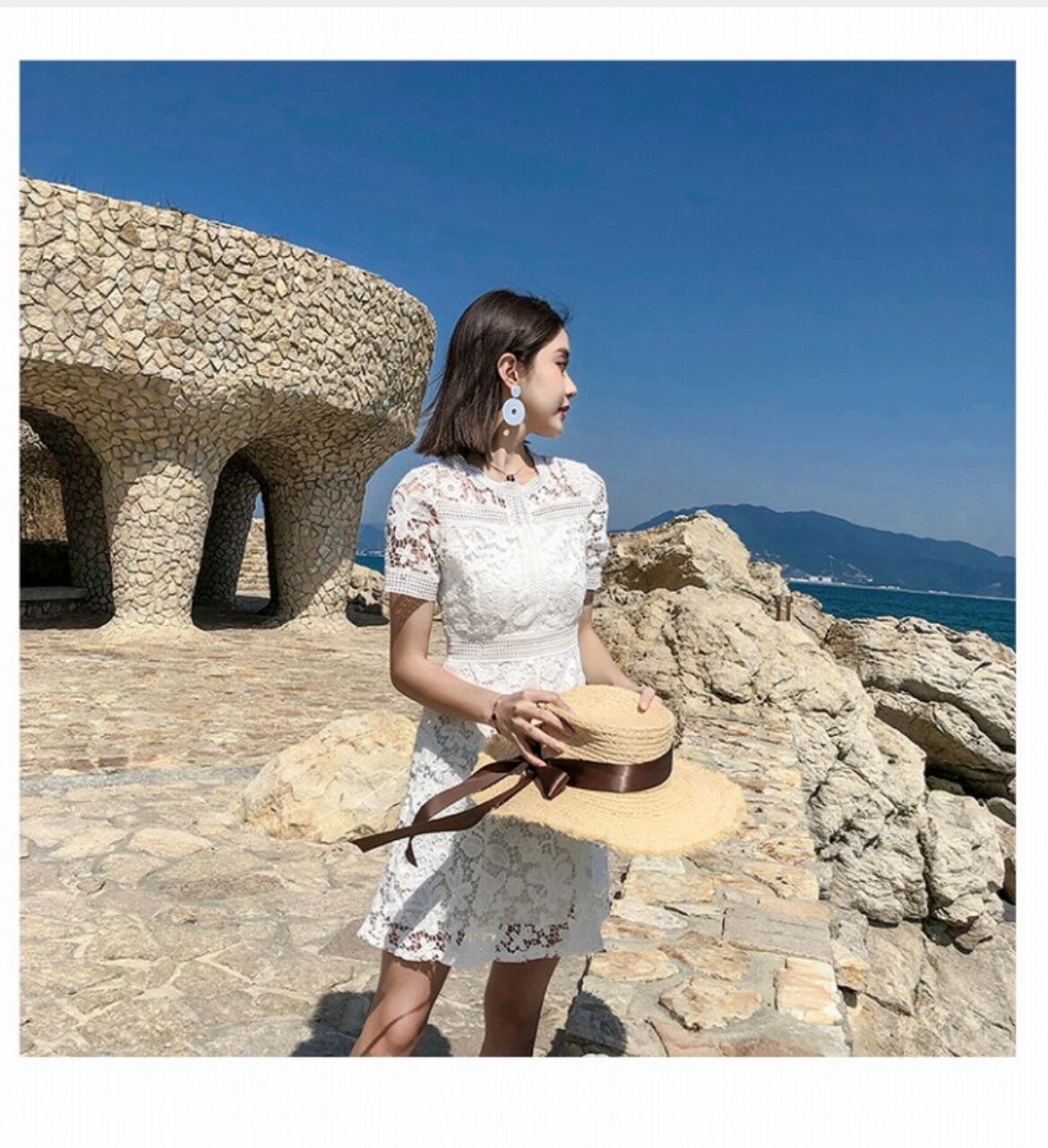 レース素材がおしゃれ♡Aラインワンピース 韓国 フレアスカート