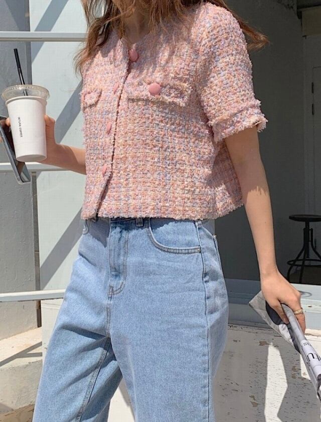 ツイードがお洒落◎半袖カーディガン♡韓国 トップス