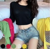 即納商品.∘ カラー豊富 サマーニット トップス 長袖 へそ出し トップス レディース 夏 無地