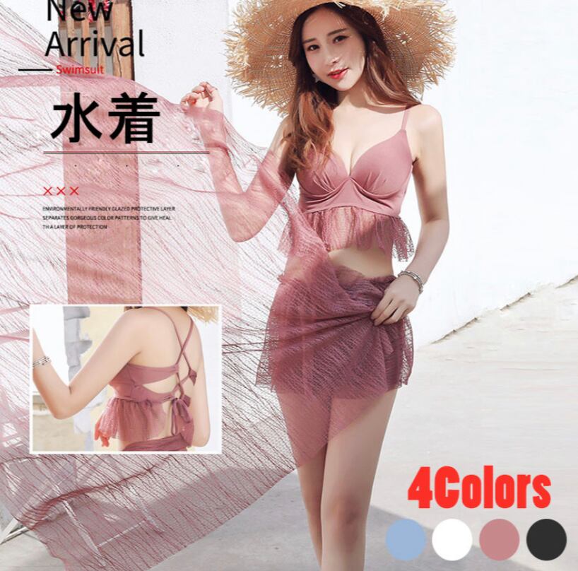 即納商品♡ 夏新作 体型カバー水着 ビキニ パレオ付き3点セット セクシー 可愛い ワイヤー入り
