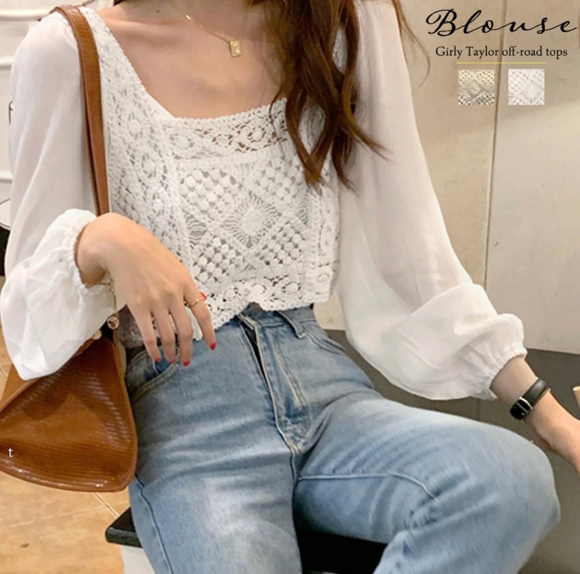 即納商品.∘スクエアネックブラウス♡韓国 可愛い