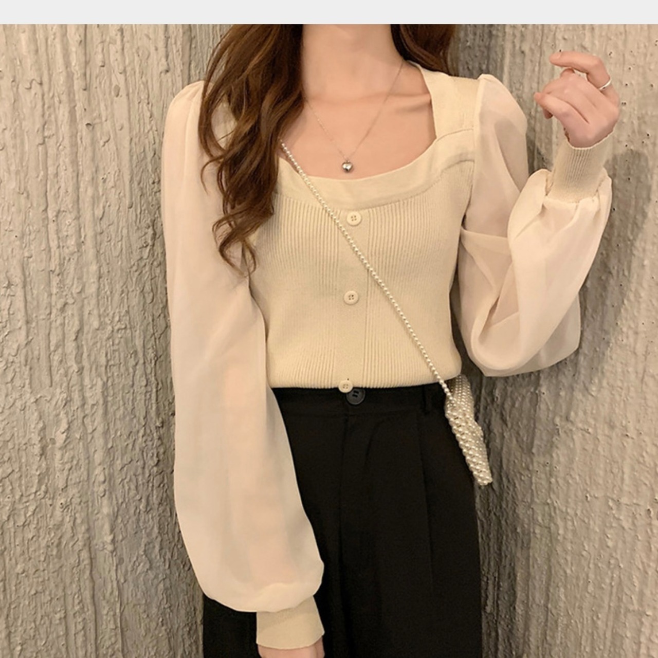 袖から覗く素肌がセンシュアルなシフォン