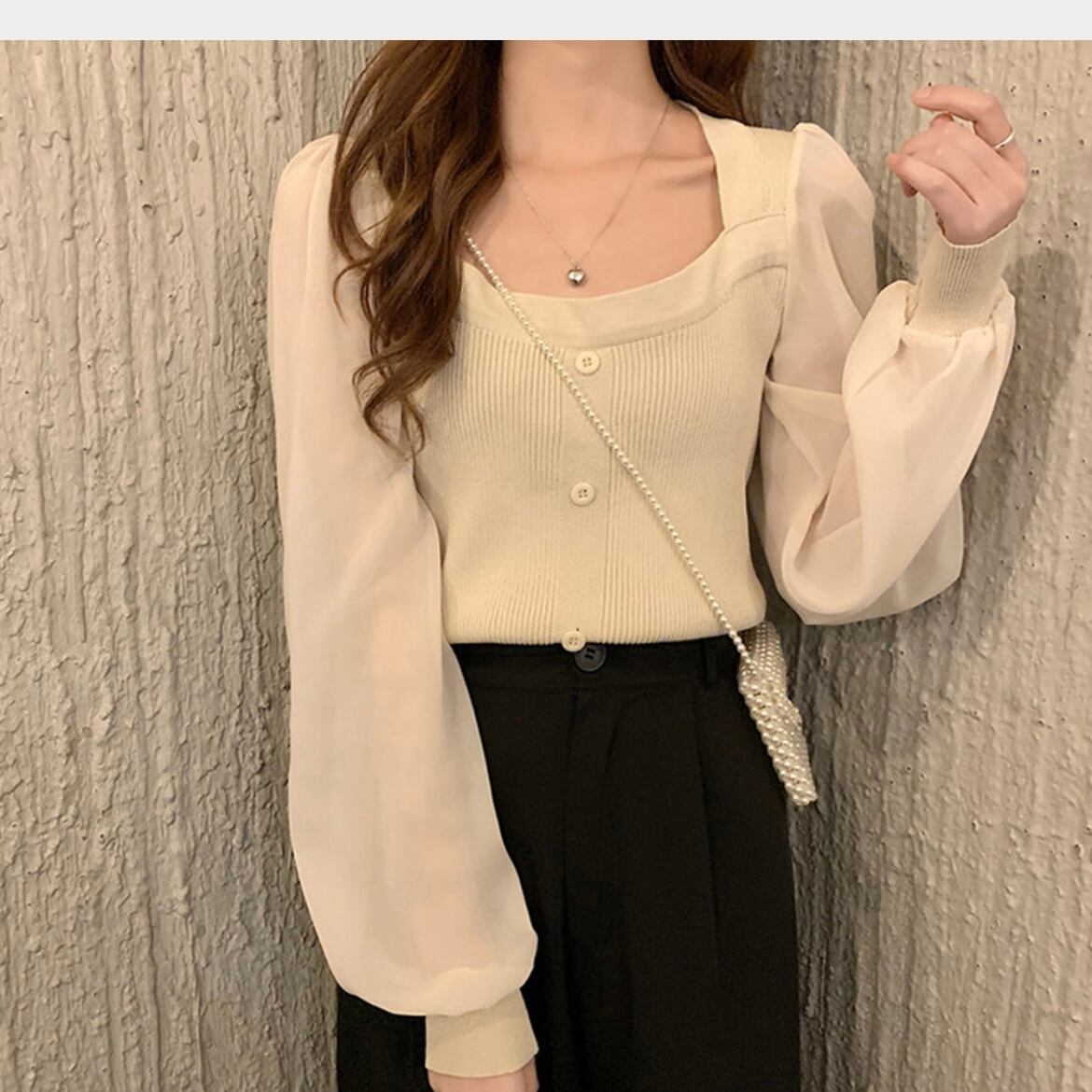 即納商品♡シャツブラウス♡ 韓国 ニットソー